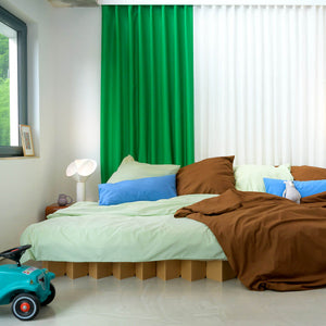 Unsere nachhaltige Naturlatex-Matratze ist die ideale Wahl für das Pappbett. Aber auch alle Matratzentypen (außer Futons) passen, solange sie mindestens 15 cm hoch sind und einen mittelfesten bis festen Härtegrad aufweisen. Beachte bitte die speziellen Empfehlungen des Matratzenherstellers. In unserem Shop findest du außerdem ein nachhaltiges Kopfteil aus Naturlatex sowie Bio-Bettwäsche.