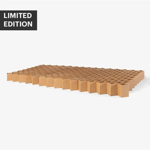 Die stabile Rautenkonstruktion macht einen zusätzlichen Lattenrost überflüssig und sorgt für eine gute Belüftung der Matratze, ohne den Liegekomfort zu beeinträchtigen. Hergestellt aus hochwertiger Schwerlastwellpappe, ist das Familienbett 2.0 LOW besonders stabil und langlebig. Es trägt bis zu vier Personen mit jeweils 150 kg Körpergewicht. Unsere AVANA-Wellpappe besteht zu 54 bis 80 % aus recyceltem Material und ist zu 100 % recycelbar. Die verwendeten Klebstoffe basieren auf veganer Maisstärke, und die Farben sind auf Wasserbasis und lösungsmittelfrei. Am Ende des Lebenszyklus kann das Familienbett 2.0 LOW bequem über die Altpapiertonne entsorgt und dem Wertstoffkreislauf zugeführt werden.