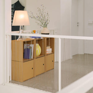 Du kannst das Regal flexibel an deine Bedürfnisse anpassen und immer wieder neu zusammenstellen. Die einzelnen Grundmodule werden horizontal und vertikal mit Verbindern zusammengefügt, die sich leicht lösen und wieder einsetzen lassen.