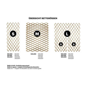 Du benötigst ein zusätzliches Erweiterungsset, wenn du beim deiner gewählten Bettgröße gleichzeitig die maximale Breite und Überlänge erreichen möchtest. Das gilt beim S-Bett für die Maße 100x220 cm, beim M-Bett für die Maße 140x220 cm und beim L-Bett für die Maße 200x220 cm. Für alle anderen Bettgrößen ist kein zusätzliches Erweiterungsset notwendig. In unserer Aufbauanleitung findest du eine Größenübersicht, der du entnehmen kannst, wie du deine Wunschbettgröße erreichst.