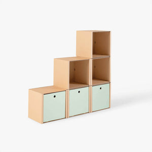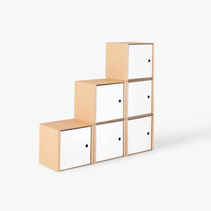 Du kannst das Regal flexibel an deine Bedürfnisse anpassen und immer wieder neu zusammenstellen. Die einzelnen Grundmodule werden horizontal und vertikal mit Verbindern zusammengefügt, die sich leicht lösen und wieder einsetzen lassen.