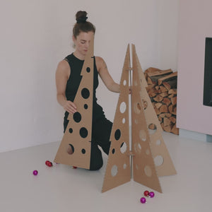 Unser nachhaltiger Weihnachtsbaum besteht zu 54 % bis 80 % aus recyceltem Papier und ist im Nullkommanix auf- und wieder abgebaut. Wie ein herkömmlicher Weihnachtsbaum, lässt er sich mit Kugeln, Lichterketten und anderem Baumschmuck schmücken und darüber hinaus sogar anmalen. Ein entscheidender Vorteil: Er nadelt nicht!