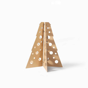 Der Baum verfügt über kleine und große Aussparungen (ø 4 cm und 8 cm), an deren Oberseite ein Schlitz zum Anbringen von Weihnachtskugeln o.ä. angebracht ist.